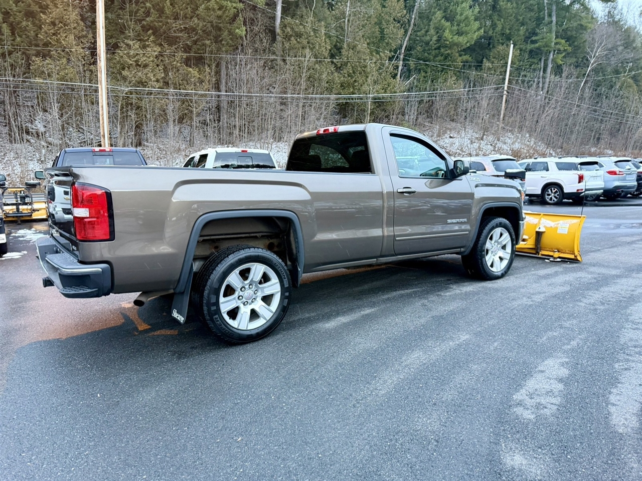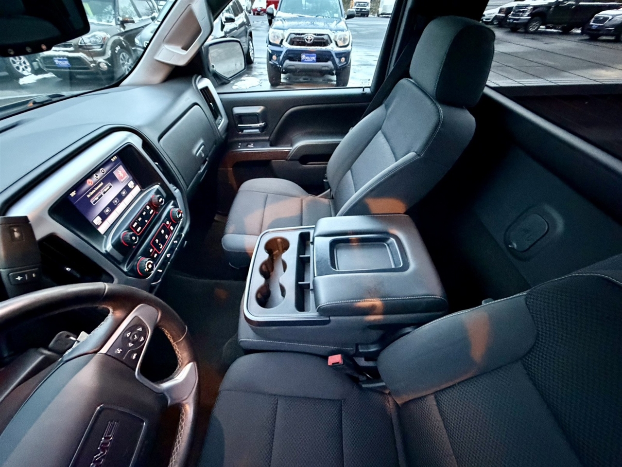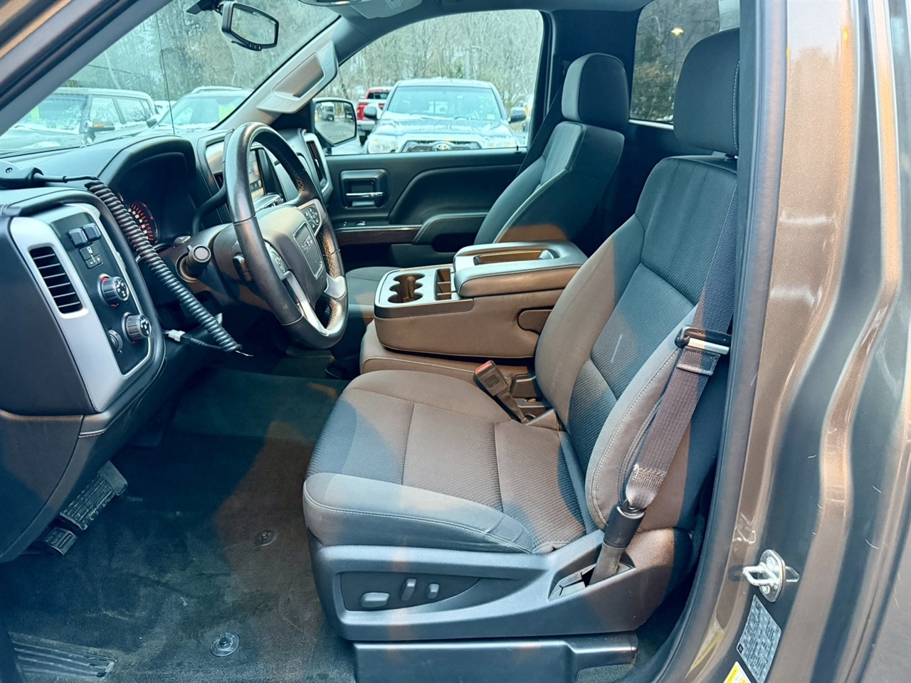 2015GMCSierra 1500 This GMC Sierra 1500 SLE truck will fit all of your needs. Whether you're on the farm or in the city, it will get the job done. When GMC created this vehicle with 4 wheel drive, they immediately enhanced the performance ability. Easily switch between two and four wheel drive to take advantage of the improved traction. It's not often you find just the vehicle you are looking for AND with low mileage. This is your chance to take home a pre-owned and barely driven GMC Sierra 1500. More information about the 2015 GMC Sierra 1500: The 2015 GMC Sierra 1500 lineup comprises a set of pickups aimed at a wide range of uses, from personal transportation to purpose-built tow rigs, farm or ranch haulers, or off-road machines. With three cab styles, two bed lengths, three engines, 2-wheel and 4-wheel drive versions, and various trim levels from spartan to lavish, the Sierra lineup offers something for all. Top-of-the-line Denali models remain the choice of more discerning truck shoppers, with luxurious interiors and the full set of features of a premium SUV. The Sierra is a quiet truck, thanks to a host of sound-deadening additions like triple-sealed doors and aerodynamic measures. The Sierra's refined engines are strong yet fuel-efficient. GM boasts that models with the V6 have towing ratings of up to 7,600 pounds, which is hundreds of pounds more than a comparable Ford F-150 or Ram 1500. Also, the Sierra 1500 might have some of the lowest maintenance costs among pickups because of its 4-wheel disc brakes with Duralife rotors, which GM claims will last twice as long as conventional brake rotors. Interesting features of this model are innovative cargo solutions, upgraded connectivity and entertainment systems, quiet, stylish cabins, and Strong, efficient engines