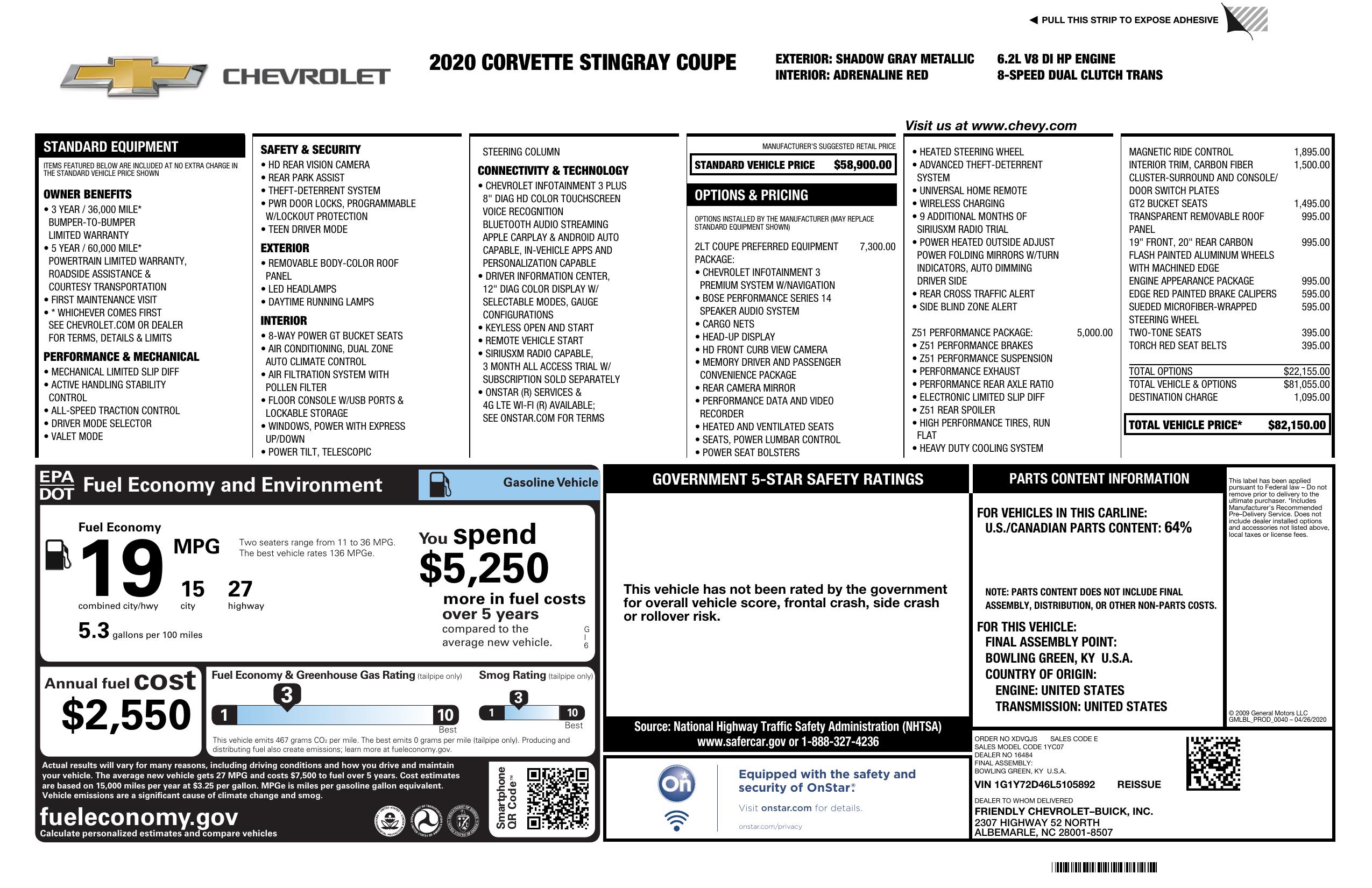 This 2020 Chevrolet Corvette 2LT is proudly offered by Poulin Auto Sales, Inc This Chevrolet Corvette 2LT is for the discerning driver who demands the utmost of his vehicle. This low mileage Chevrolet Corvette has barely been touched. It's the next best thing to buying new. This Chevrolet Corvette 2LT is equipped with navigation, so you no longer have to wonder if you're headed in the right direction. Added comfort with contemporary style is the leather interior to heighten the quality and craftsmanship for the Chevrolet Corvette 2LT.